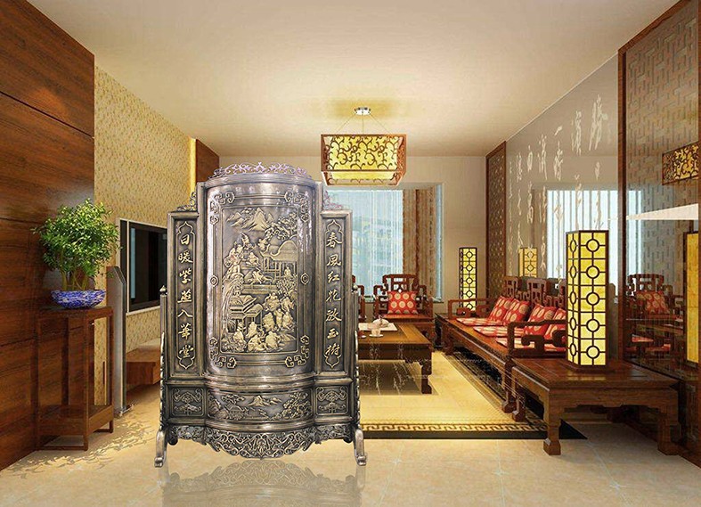 過去的人大都習(xí)慣席地而坐的,主人的身后位置一般會擱一個插屏,以表明主人的地位和位置??腿艘贿M(jìn)屋,就知道重要的方位一定是有插屏那個位置。如今,國家領(lǐng)導(dǎo)人接見外賓的時候,身后往往有一個屏風(fēng),或者有一幅大畫,其功能相當(dāng)于當(dāng)年的插屏。